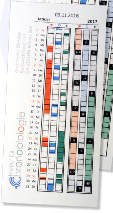 Das chronobiologische BIO-DAB-Rhythmogramm stellt die tägliche Verfassung eines bestimmten Menschen für eine Anzahl Monate nach Wahl tabellarisch dar. Die handliche Faltkarte im Taschenformat orientiert über die Zeitqualität des Organismus und hilft so, die energievollen Tage zu nutzen und sich während Phasen der Regeneration bewusst zu schonen. Das BIO-DAB-Rhythmogramm stellt die Herz-, Kopf- und Kreislaufphasenals Farbbalken dar. Zusammen mit der mitge-lieferten Erklärungskarte lässt sich das chronobiologische Rhythmogramm auch ohne Vorkenntnisse verstehen. Einfache Handlungsaufforder-ungen ermöglichen Verhaltensanpassungen im Alltag, die das Wohlbefinden, die Gesundheit und den Erfolg begünstigen.Das neue BIO-DAB-Rhythmogramm 2017 basiert auf einer von Grund auf erneuerten Berechnungs-Software. Der technische Fortschritt ermöglicht uns eine viel genauere Darstellung der Belastungsphasen. Neu werden :•die Trigon-Konstellationen präziser erfasst•eintägige Belastungen verteilt dargestellt, wenn sie sich über zwei Datumstage erstrecken•die Belastungen auf Vierteltage genau angezeigt•durch den Einbezug der Geburtszeit eine grössere Individualisierung erreichtDadurch liefert Ihnen das neue BIO-DAB-Rhythmogramm noch genauere Aussagen über Ihre Tagesverfassung.